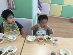 もも組のお友達を優しくサポートしてあげるりんご組さんも見られました![]()