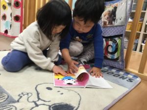 毎日の読み聞かせ以外にも、子どもたちが自分で好きな絵本を手に取り