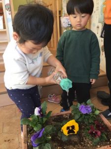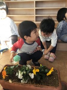 次の日にはみんなでパンジーを植えました?