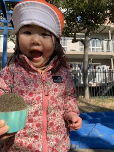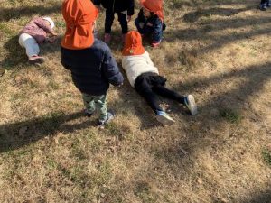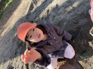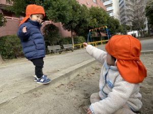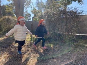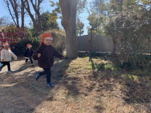 寒さに負けないように、お砂場の周りをぐるぐる何周も走っていました