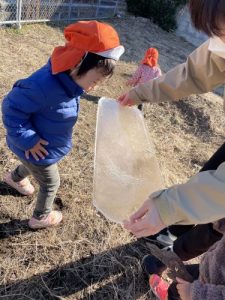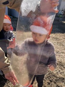 触ってみたり、あまりの冷たさにびっくりしたり、みんな興味津々でした。