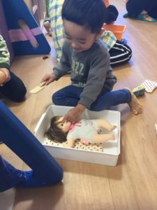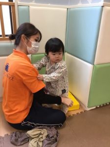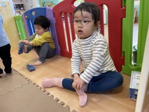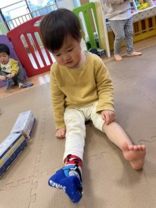 いちご組さんは自分で靴下を履くのが上手になりました![]()
