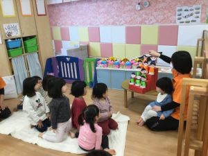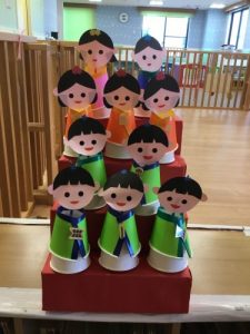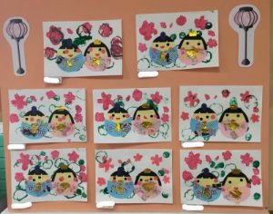 各クラスのひな祭り製作に囲まれて、会を行いました?