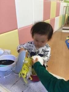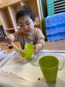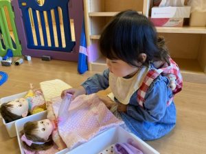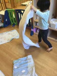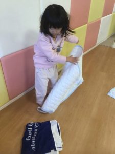 お昼寝用のお布団も「自分でたたみたい!!」と言います