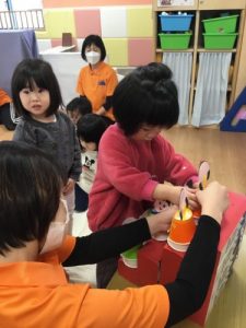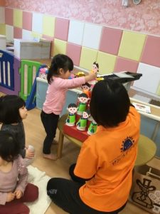 女の子たちには、お雛様を飾るお手伝いをしてもらいました