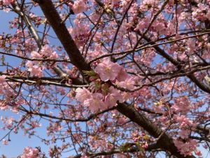 小春日和が続いたおかげで、公園中央の桜の木は満開寸前でした