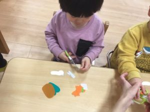 りんご組は、ハサミを使って大好きなカレーライスを作りました✂️✨
