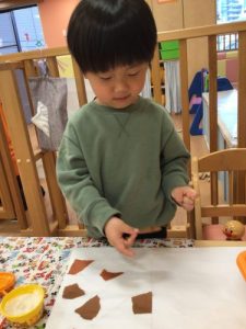 茶色い画用紙を破いて、貼っているようですが、、、。