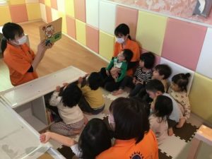 お部屋が変わっても、絵本の読み聞かせは変わらず好きなようです![]()
