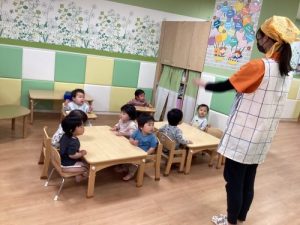 絵本や紙芝居に集中する姿も見られるようになりました‼️