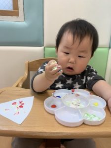 もも組さんは初めて絵の具に触れてみました❗️
