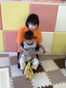 保育者のお膝の上で読んでもらったり、、、