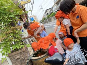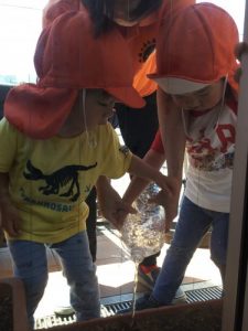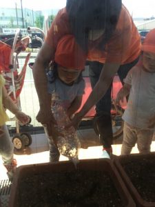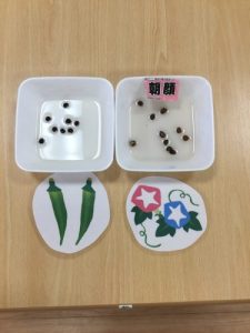 りんご組さんは、朝顔とオクラの種を植えました??