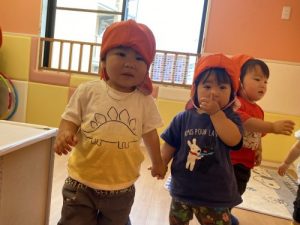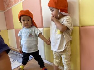 いちご組さんは、お友達と手を繋いで歩けるように?