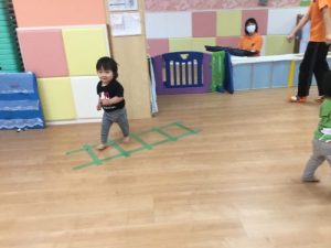 リトミックの時間では、電車やうさぎに変身![]()