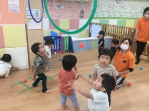 輪っか目掛けてみんなで全力投球です‼️?