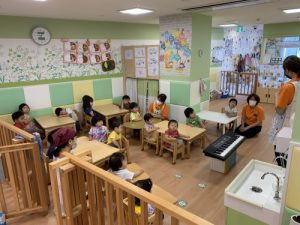 保育者のピアノに合わせて、お歌を楽しく歌っていこうね?![]()