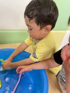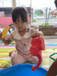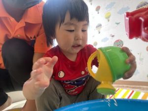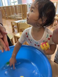「お水で遊ぶよー!」という保育者の声が聞こえると、お片付けのスピードもぐんと速くなります???