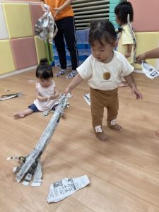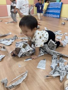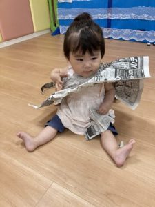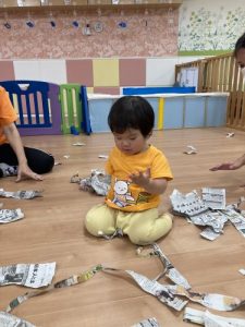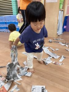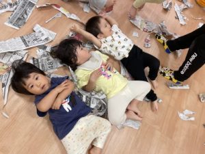 雨の日には、大量の新聞紙が遊んでくれます![]()