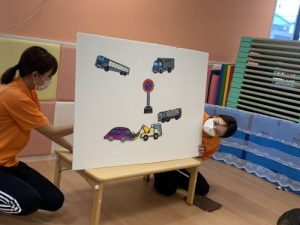 そして、みんな大好きな「はたらくくるま」のパネルシアターが始まりました!