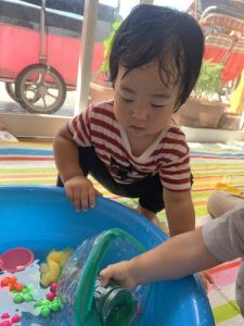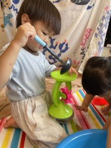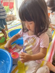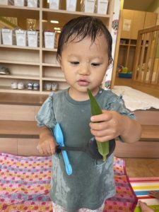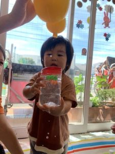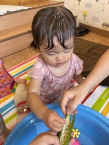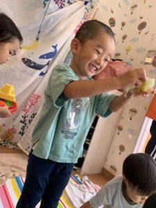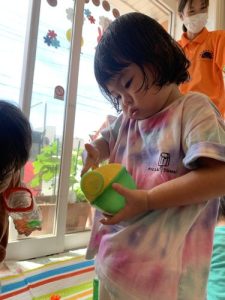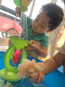 ちょうどカンカン照りのお水遊び日和で、子どもたちはびしょ濡れになりながら最後のお水遊びを楽しんでいましたよ🍧🌻🍅