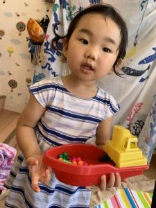 りんご組さんからもも組さんに「一本橋こちょこちょ」の手遊びをしてあげています💓💓