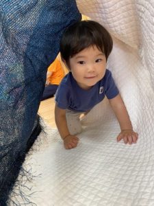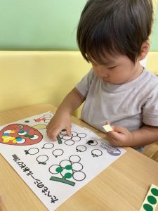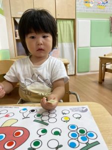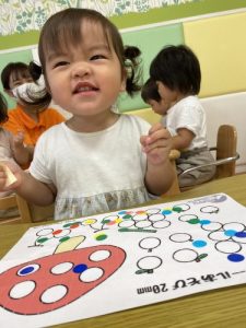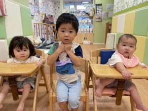 カリキュラムの体操では、元気な声をお部屋中に響かせているいちご組さんです❗️