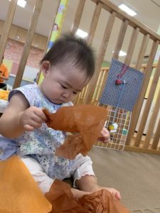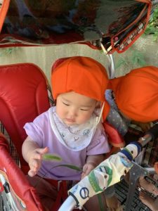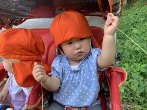 自分のお顔やお友達のお顔をツンツンしたりして、バギーの中はいつも賑やかです![]()