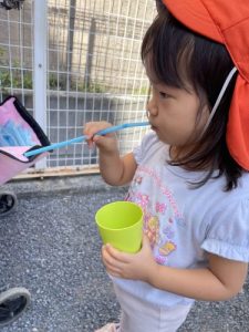 ストローのシャボン玉は、すっかりお気に入りのお散歩アイテムになりました![]()