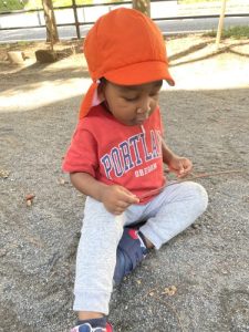 どんぐりを集めたり、木の棒を拾ったり、お外ならではの遊びを楽しみました。