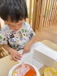 画用紙を破いて、糊で貼り付けます。