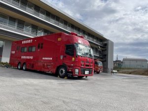 駐車中の消防車に向かって「オーライ!オーライ!」と