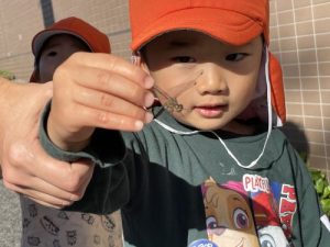 職員の肩に止まったトンボを、子どもたちがまさかのキャッチ‼️