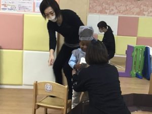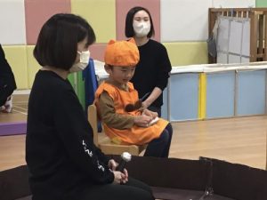 多くの保護者の方に囲まれて、涙を浮かべるお友達もいましたが、