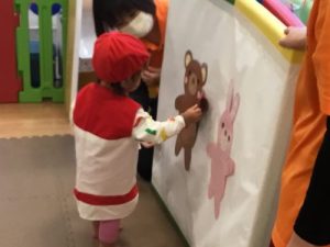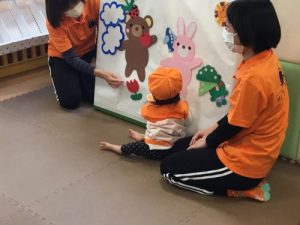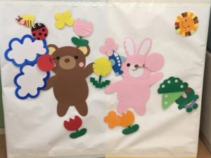 「どんな色が好き?」のお歌に合わせて、絵を貼っていきます。