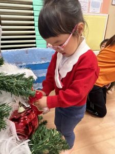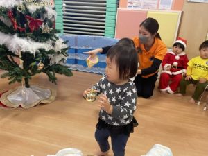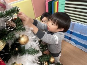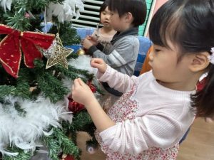 みんなでオーナメントを探して、ツリーにオーナメントを飾ることができたら、