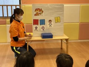 今回の出し物は消防士に変身して火事を消しに行く