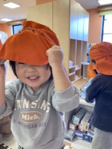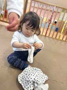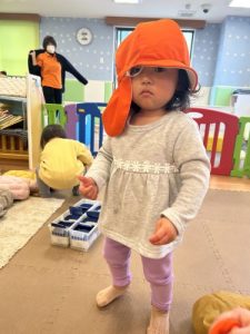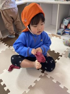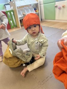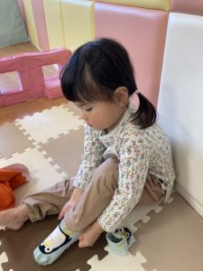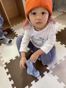 お散歩に行く準備も、頑張っている子どもたちです。