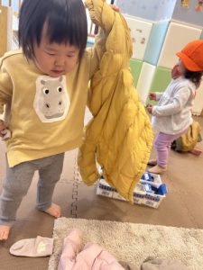 そして上着も、1人で着てみたいお年頃![]()