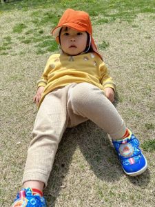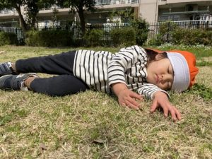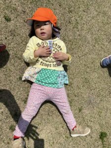 ポカポカの日差しに包まれ、気持ちよかったのか芝生にゴロン。