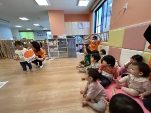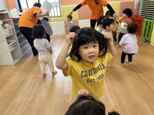 先生にお名前を呼ばれたお友達は、前に出てやってもらいました。