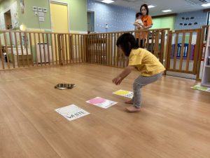 先生が言った「color」と同じ色のカードを選べるかな?というゲームです。