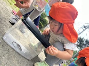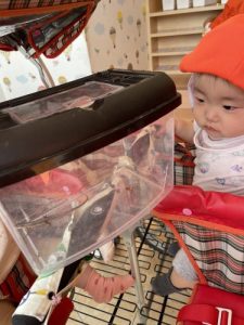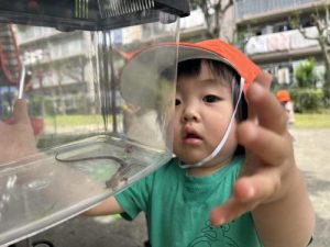 珍しい生き物に興味津々の子どもたちです![]()