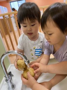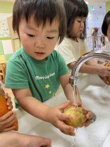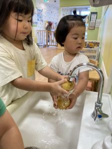 りんご組さんにはお野菜を洗ってもらいました🍅