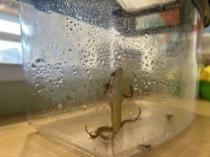 四丁目公園で、日向ぼっこをしているカナヘビを捕まえました❗️