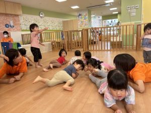 少し難しい運動ですが、アヒルポーズには個性が出ていてとても可愛らしいです