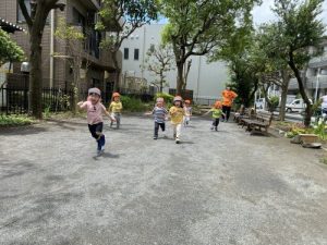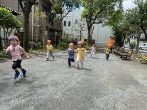 りんご組さんは、お外に出てかけっこです🏃♀️🏃♀️