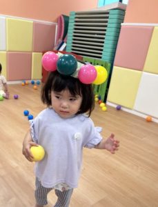 ボールをテープにつけてボールガールになりました![]()