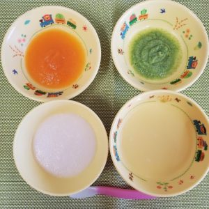 【離乳食(初期)】エネルギー54kcal たんぱく質1.4g 脂質0.1g 粥 キャベツペースト じ...