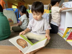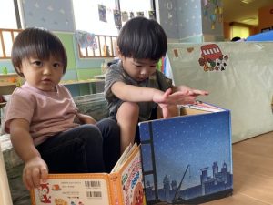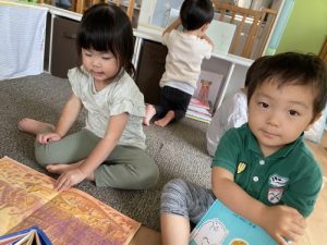 いちご組さんは、みんなでぎゅーっと集まって読んでいますね![]()